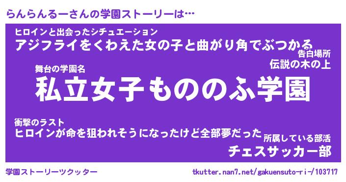 | 女子向けラノベタイトル風あだ名 | 『らんらんるー姫と円卓の騎士』 |