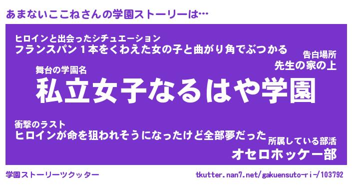 | 女子向けラノベタイトル風あだ名 | 『誰かこのあまないここねを説明してください! ~契約から始まるウェディング~』 |