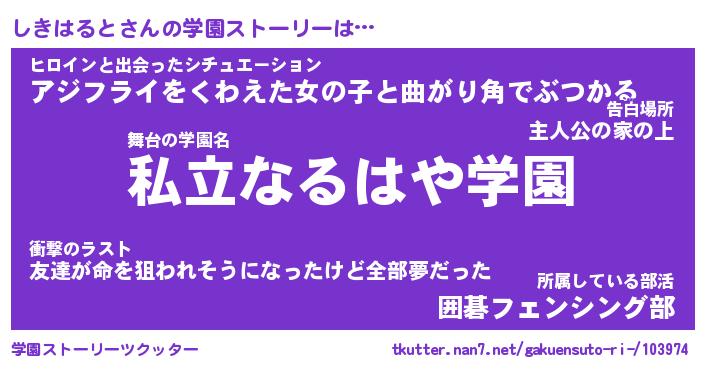| 男性向けラノベタイトル風あだ名 | 『しきはるとの憂鬱』 |