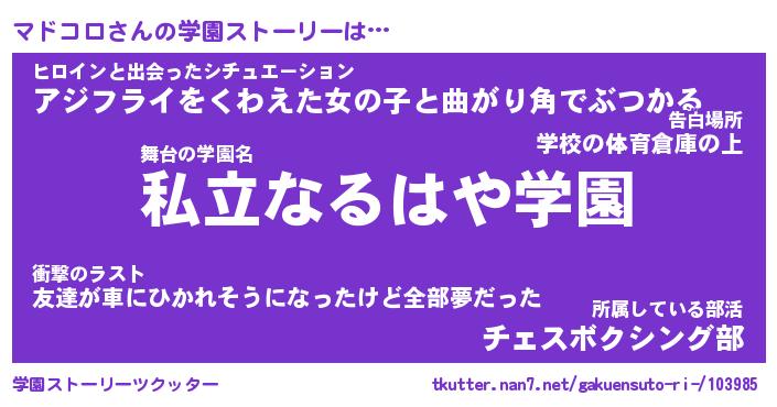 | 男性向けラノベタイトル風あだ名 | 『マドコロの憂鬱』 |