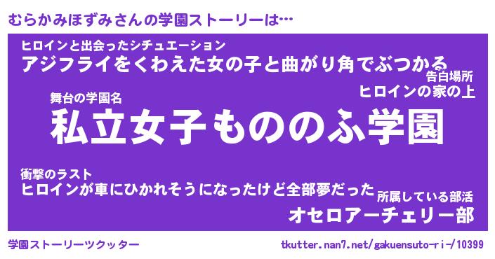 | 女子向けラノベタイトル風あだ名 | 『誰かこのむらかみほずみを説明してください! ~契約から始まるウェディング~』 |