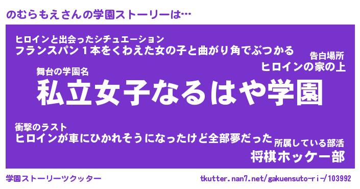 | 女子向けラノベタイトル風あだ名 | 『のむらもえ姫と円卓の騎士』 |