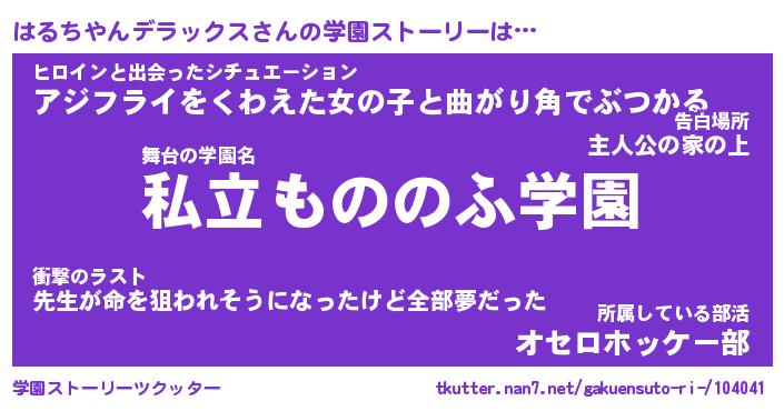 | 告白場所 先生の家の上 …「ふぃぎゅこ」 | 2月17日 06:24 |