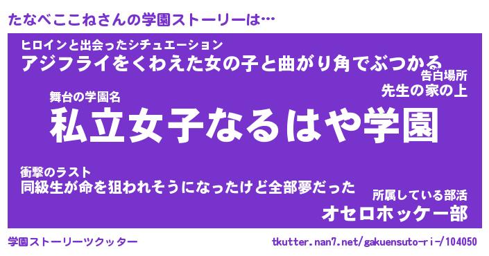 | 肩書あだ名 | 『たなべここね店長』『たなべここね担任』 |
