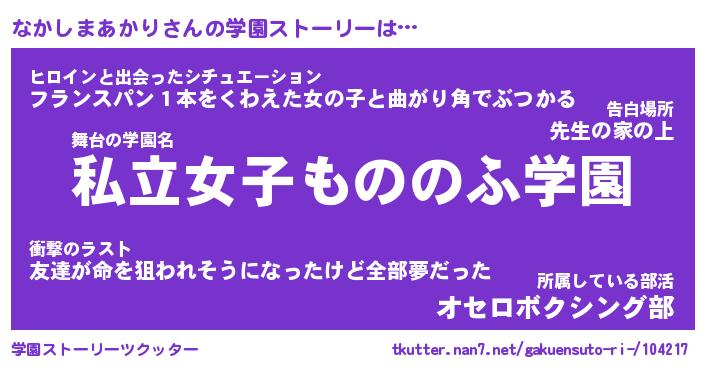 | 女子向けラノベタイトル風あだ名 | 『誰かこのなかしまあかりを説明してください! ~契約から始まるウェディング~』 |