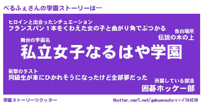 | 意味不明あだ名 | 『ペロリンべるふぇ』『永久保存べるふぇ』 |