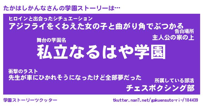 | 伝説のあだ名 | 『伝説のスナイパーたかはしかんな』 |