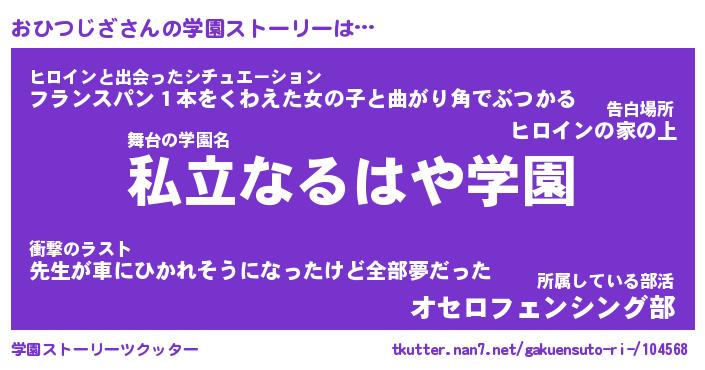 | 告白場所 先生の家の上 …「ふぃぎゅこ」 | 2月17日 06:24 |