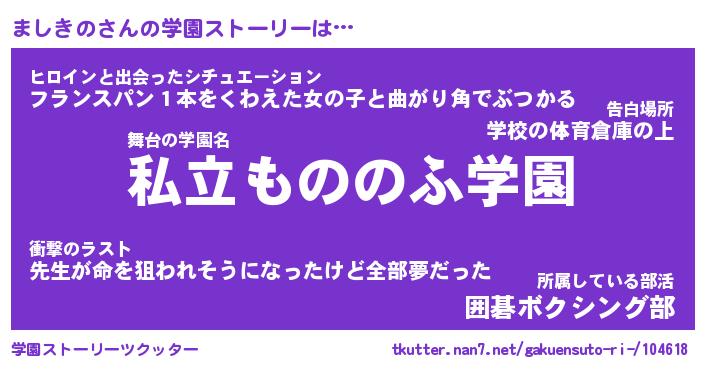 | 告白場所 先生の家の上 …「ふぃぎゅこ」 | 2月17日 06:24 |