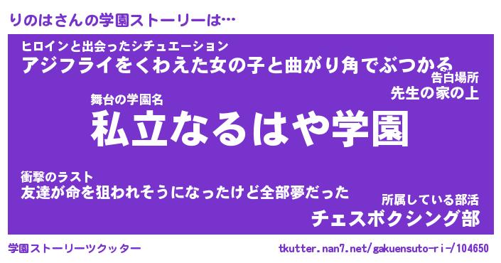 | 女子向けラノベタイトル風あだ名 | 『りのは姫と円卓の騎士』『りのは恋絵巻』 |
