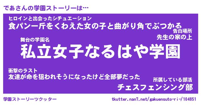 | 告白場所 先生の家の上 …「ふぃぎゅこ」 | 2月17日 06:24 |