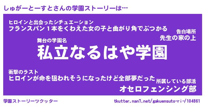 | 告白場所 先生の家の上 …「ふぃぎゅこ」 | 2月17日 06:24 |