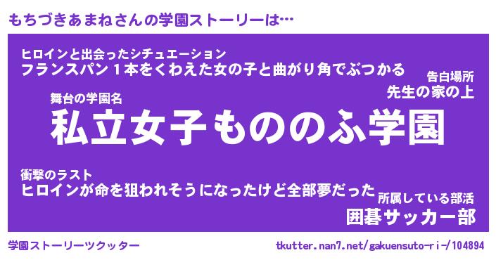 | 女子向けラノベタイトル風あだ名 | 『誰かこのもちづきあまねを説明してください! ~契約から始まるウェディング~』 |