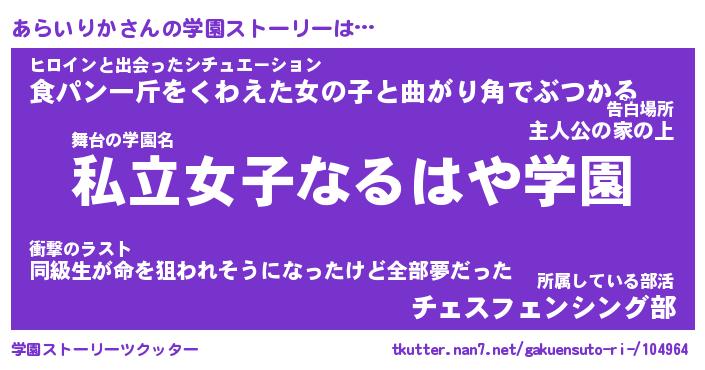 | 告白場所 先生の家の上 …「ふぃぎゅこ」 | 2月17日 06:24 |
