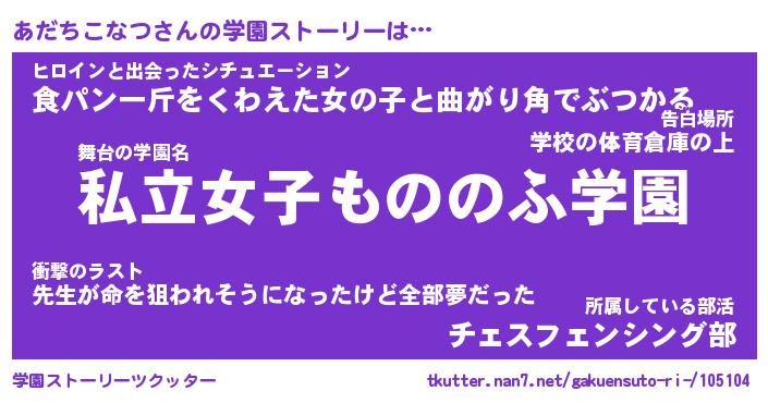 | 男性向けラノベタイトル風あだ名 | 『アダチコナツアートオンライン』 |
