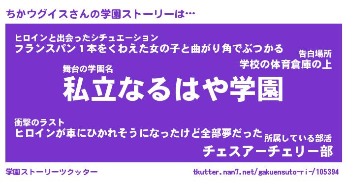 | 男性向けラノベタイトル風あだ名 | 『ちかウグイスの憂鬱』 |