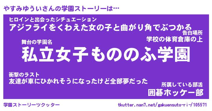 | ヒーロー風カッコイイあだ名 | 『スーパーヤスミユウイ』『暗黒騎士ヤス』 |