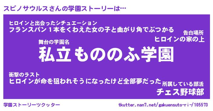| 男性向けラノベタイトル風あだ名 | 『スピノサウルスの憂鬱』 |