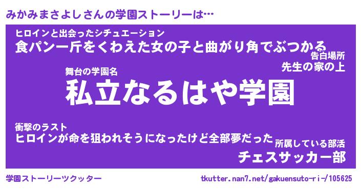 | 男性向けラノベタイトル風あだ名 | 『みかみまさよしの憂鬱』 |