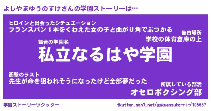 | 胡散臭い通販商品みたいなあだ名 | 『必ず成功する霊験あらたかなお札…その名も「よしやまゆうのすけ」』 |