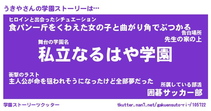 | 男性向けラノベタイトル風あだ名 | 『うきやの憂鬱』 |