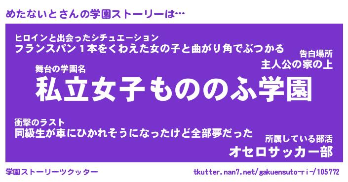 | ファンタジー風あだ名 | 『メタフェル』『エターナルメタナイトー』 |