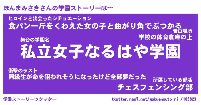 | 女子向けラノベタイトル風あだ名 | 『誰かこのほんまみさきを説明してください! ~契約から始まるウェディング~』 |