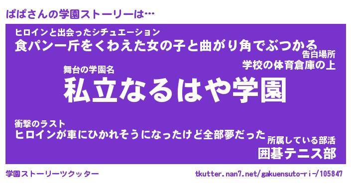 | 胡散臭い通販商品みたいなあだ名 | 『モテモテ間違いなし霊験あらたかなお札…その名も「ぱぱ」』 |