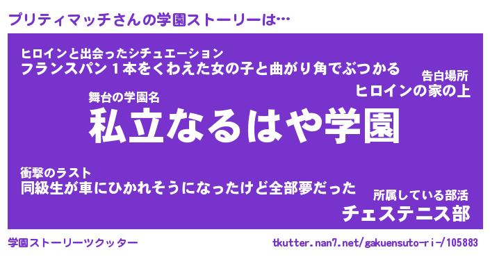 | 女子向けラノベタイトル風あだ名 | 『(仮)プリティマッチのやんごとなき事情』 |