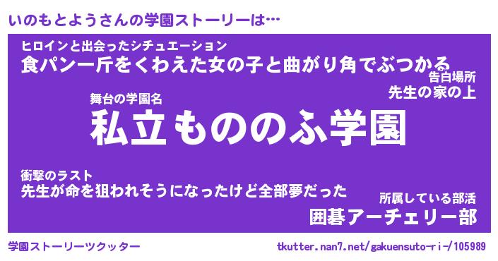 | 男性向けラノベタイトル風あだ名 | 『いのもとようの憂鬱』 |
