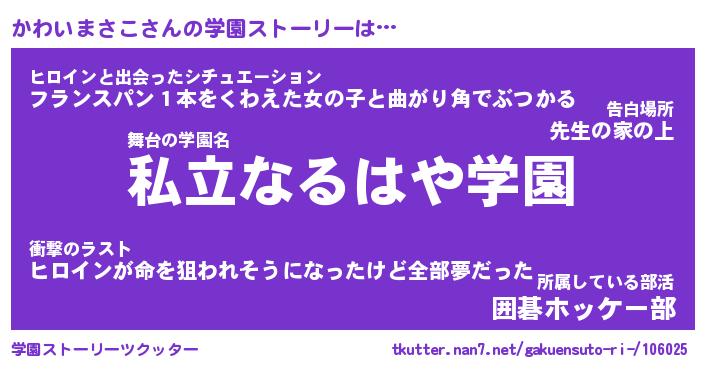 | 女子向けラノベタイトル風あだ名 | 『(仮)かわいまさこのやんごとなき事情』 |
