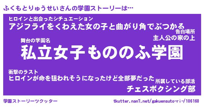 | 番長 | ふくもとりゅうせい、またの名を・・・!『スケバンふくもとりゅうせいさん』 |