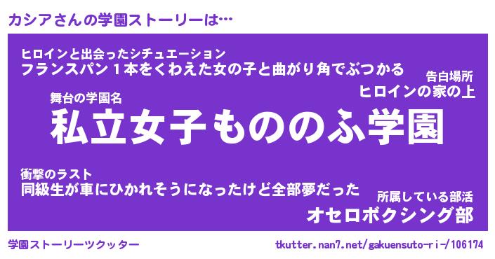 | 女子向けラノベタイトル風あだ名 | 『カシア姫と円卓の騎士』『カシア恋絵巻』 |