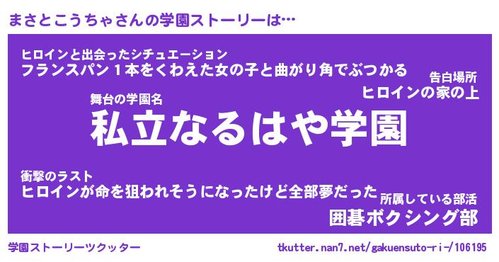 | 告白場所 先生の家の上 …「ふぃぎゅこ」 | 2月17日 06:24 |