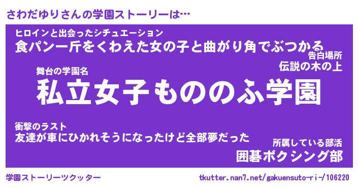 | ファンタジー風あだ名 | 『サワフェル』『エターナルサワダユリー』 |
