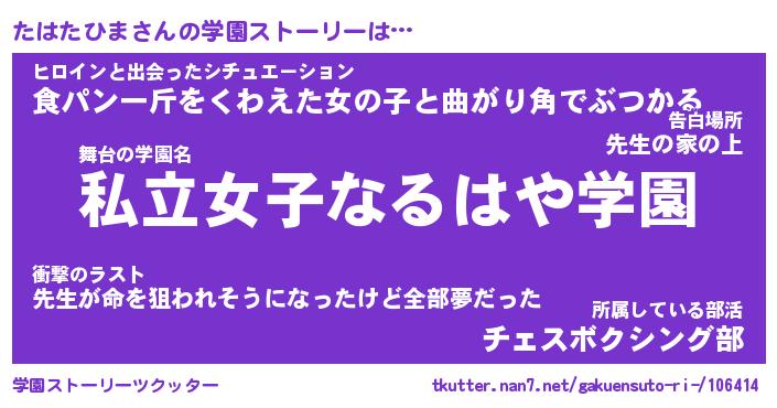 | ヒーロー風カッコイイあだ名 | 『スーパータハタヒマ』『暗黒騎士タハ』 |