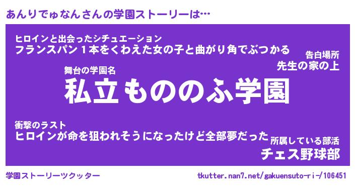 | 男性向けラノベタイトル風あだ名 | 『あんりでゅなんの憂鬱』 |