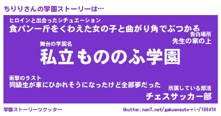| 男性向けラノベタイトル風あだ名 | 『ちりりの憂鬱』 |