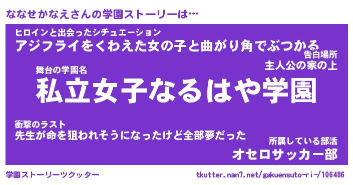 | 女子向けラノベタイトル風あだ名 | 『誰かこのななせかなえを説明してください! ~契約から始まるウェディング~』 |