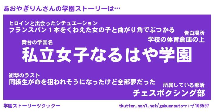 | 男性向けラノベタイトル風あだ名 | 『アオヤギリンアートオンライン』 |
