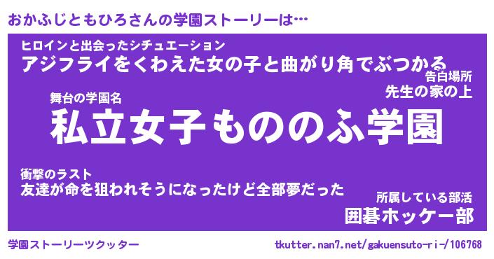 | 女子向けラノベタイトル風あだ名 | 『誰かこのおかふじともひろを説明してください! ~契約から始まるウェディング~』 |