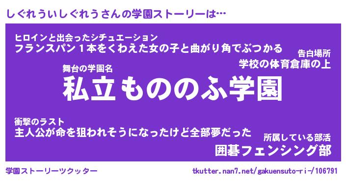| 男性向けラノベタイトル風あだ名 | 『しぐれういしぐれうの憂鬱』 |
