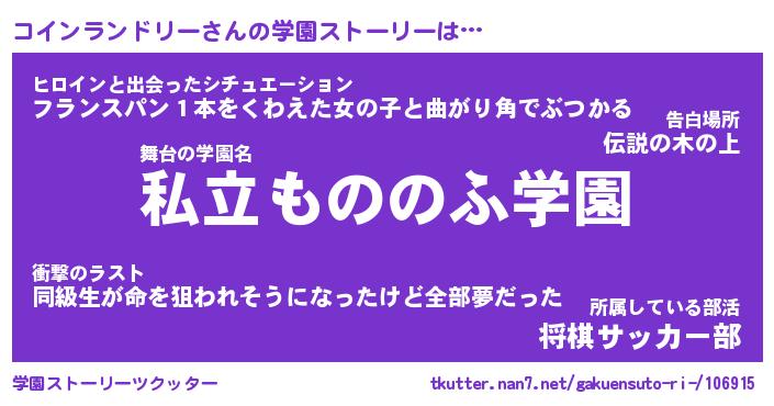 | 男性向けラノベタイトル風あだ名 | 『コインランドリーの憂鬱』 |