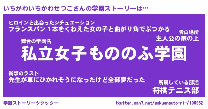 | 女子向けラノベタイトル風あだ名 | 『誰かこのいちかわいちかわせつこを説明してください! ~契約から始まるウェディング~』 |