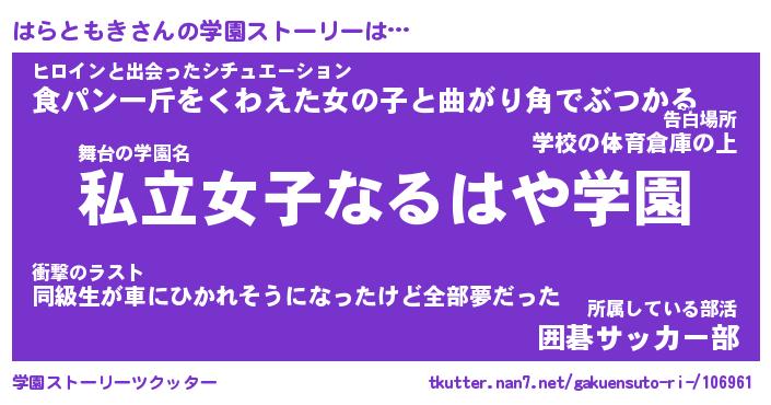 | 伝説のあだ名 | 『不死鳥のスナイパーはらともき』 |