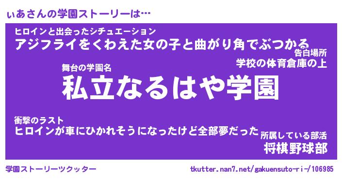 | 告白場所 先生の家の上 …「ふぃぎゅこ」 | 2月17日 06:24 |
