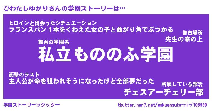 | 男性向けラノベタイトル風あだ名 | 『ひわたしゆかりの憂鬱』 |