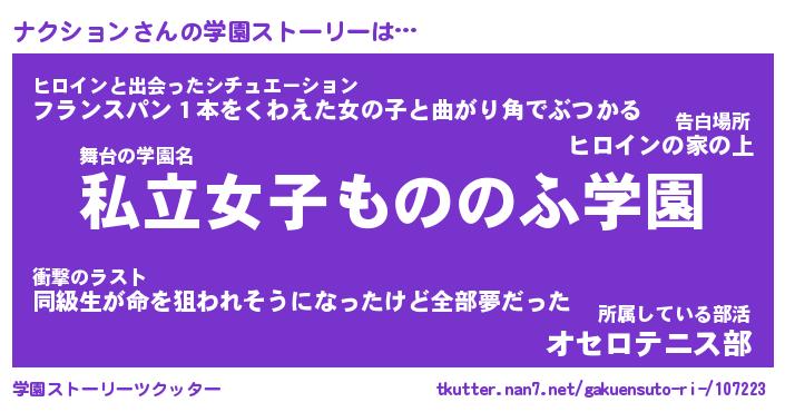 | 女子向けラノベタイトル風あだ名 | 『ナクション姫と円卓の騎士』 |