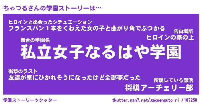 | 女子向けラノベタイトル風あだ名 | 『ちゃつる姫と円卓の騎士』 |