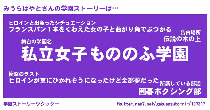 | 告白場所 先生の家の上 …「ふぃぎゅこ」 | 2月17日 06:24 |